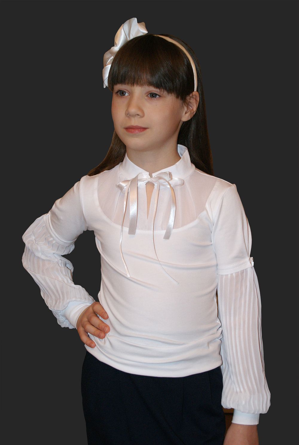 Блузка нарядная для школы. Блузка из мягкого трикотажная на девочку, рукава и кокетка из шифона и плессеровки, воротник стойка завязывается на атласные ленточки. Декорирована по рукаву бантиками.