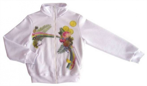 Застёжка-молния, 2 кармана с листочкой, печать, воротник-стойка, трикотажные манжеты и низ изделия"