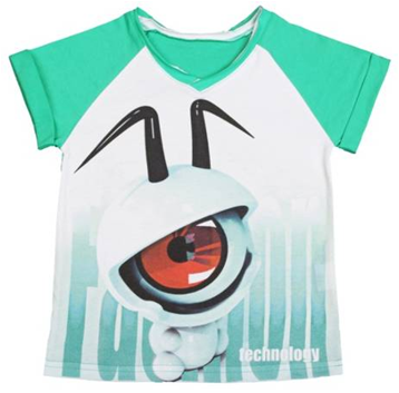 Крупная фотопечать, оригинальный отворот рукавов, воротник с открытыми срезами с имитацией многослойности"