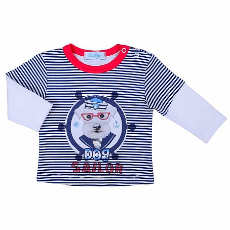 Оригинальная кофточка для мальчика с длинным рукавом из лёгкого трикотажного полотна (интерлок). Для удобного использования присутствует две плечевых кнопки, так же добавлена яркая печать и имитация многослойности на рукавах .