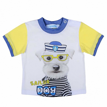 Оригинальная кофточка для мальчика с коротким рукавом из лёгкого трикотажного полотна (кулирка). Для удобного использования присутствует две плечевых кнопки, так же добавлена яркая печать.
