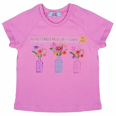 Джемпер для девочки Нежный джемпер с коротким рукавом для девочки из трикотажного полотна (кулирка), с печатью и стразами, прекрасно подойдет для повседневной носки.