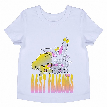 Летняя однотонная фуфайка с коротким рукавом для девочки выполненная из легкого трикотажного полотна (кулирка), с яркой печатью, станет отличным вариантом на каждый день.