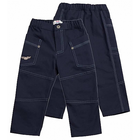 2 накладных кармана с отделкой хольнитенами, металлический отделочный элемент, молния + пуговица-болт, контрастные строчки, боковые швы смещены назад, резинка по талии. "