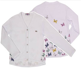 Жакет с V-образным вырезом, застёжка на кнопки, навесной элемент ""Белль Бимбо"", косой крой боковых швов, фотопечать ""бантики"" на спинке и боках, фигурный низ изделия. "