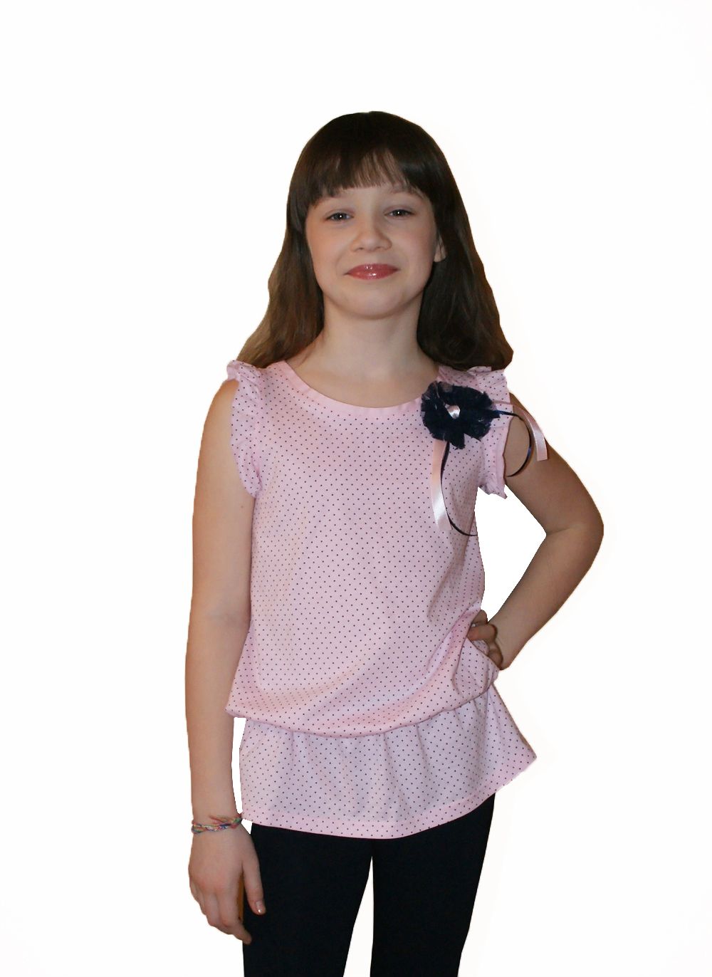 Блузка на девочку из трикотажа (кулирка, качество - пенье). Декорирована кружевным украшением.