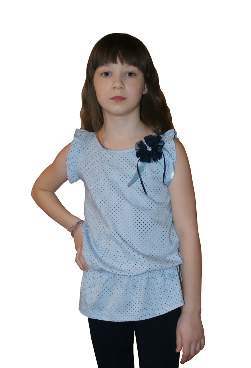 Блузка на девочку из трикотажа (кулирка, качество - пенье). Декорирована кружевным украшением.