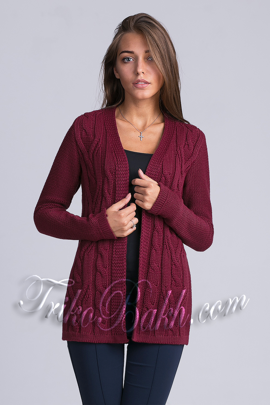 Вязаный элегантный распашной кардиган с узором на передней части