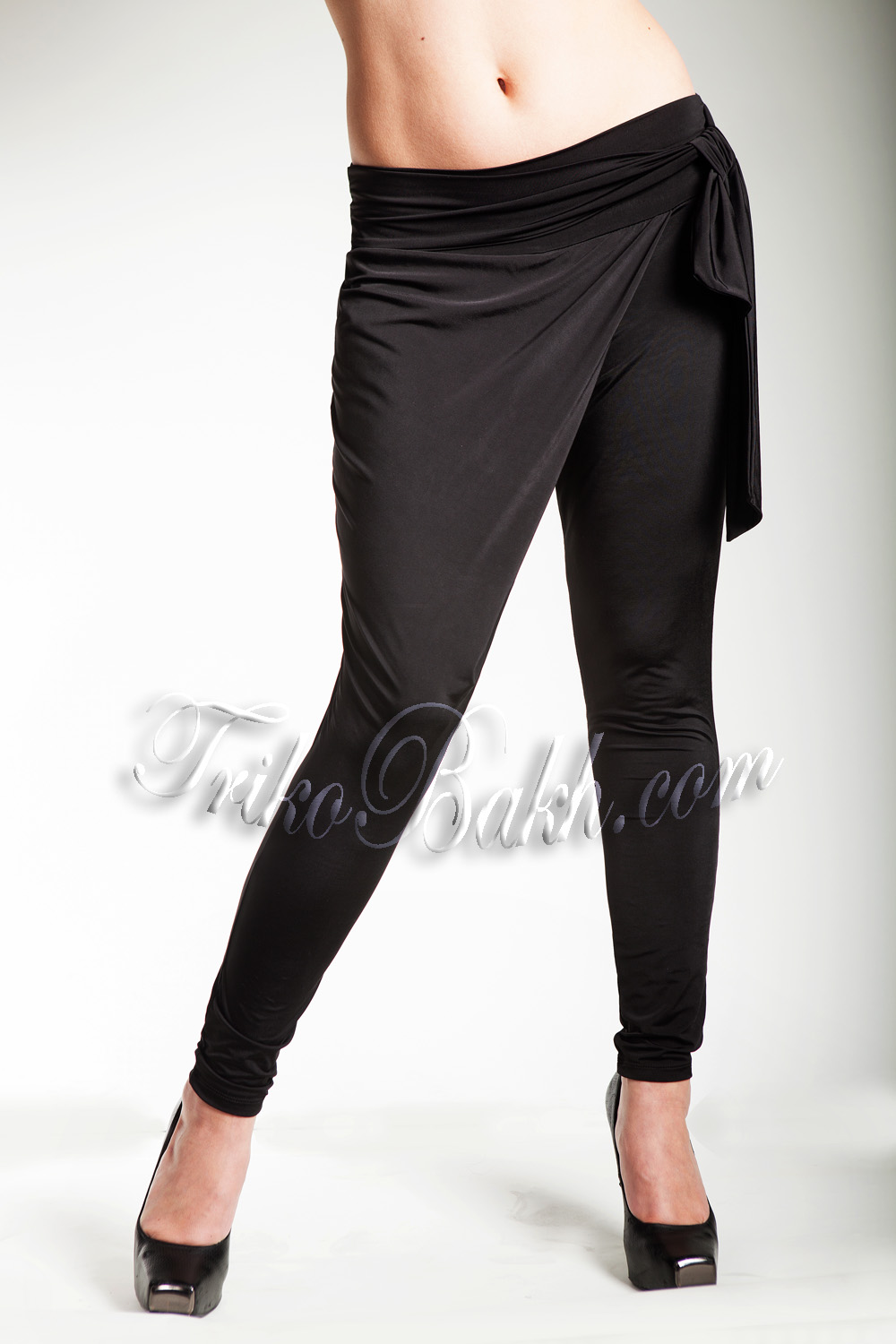 Брюки - современный покрой с оригинальной имитацией запаха спереди, зауженный низ. Из приятного эластичного трикотажа. Завязываются на широкий пояс.